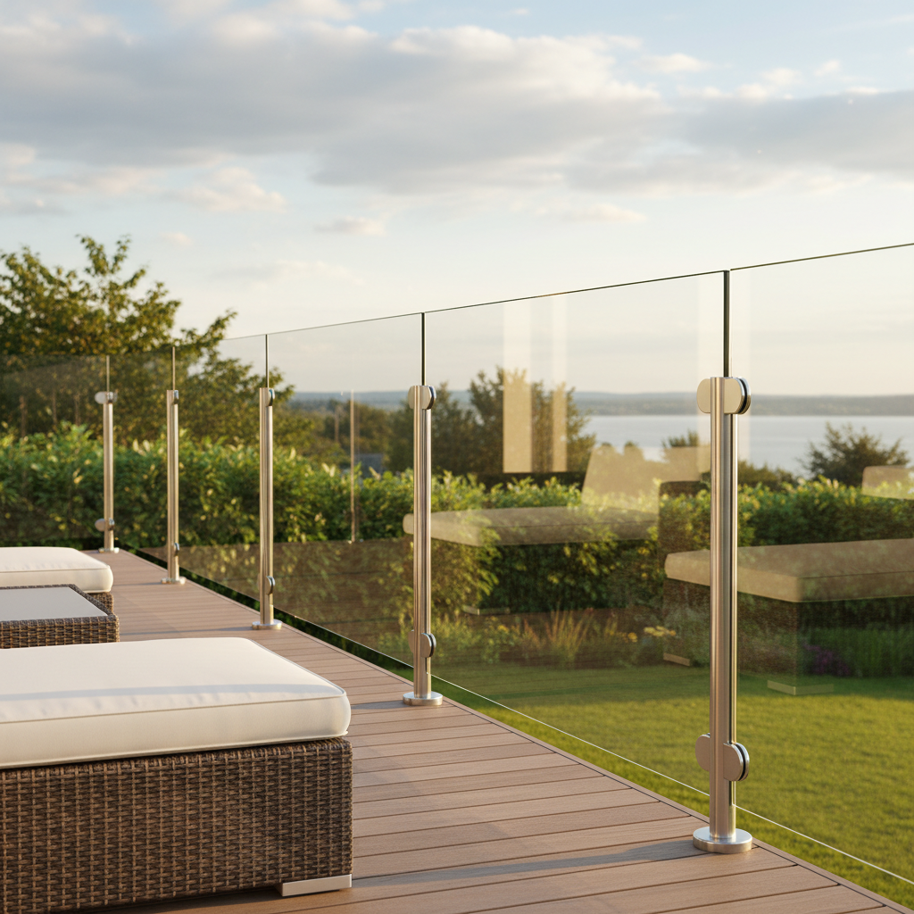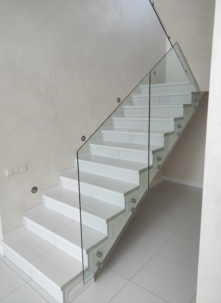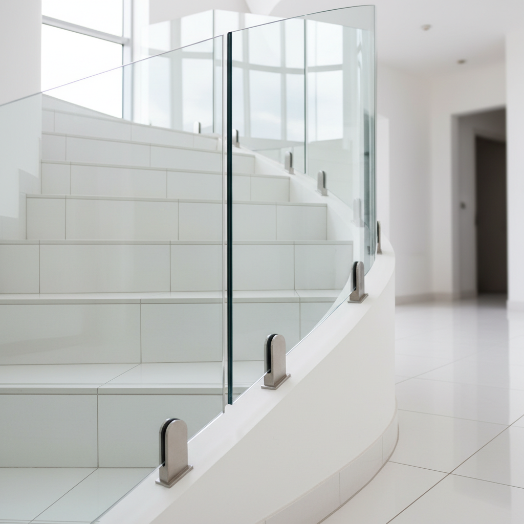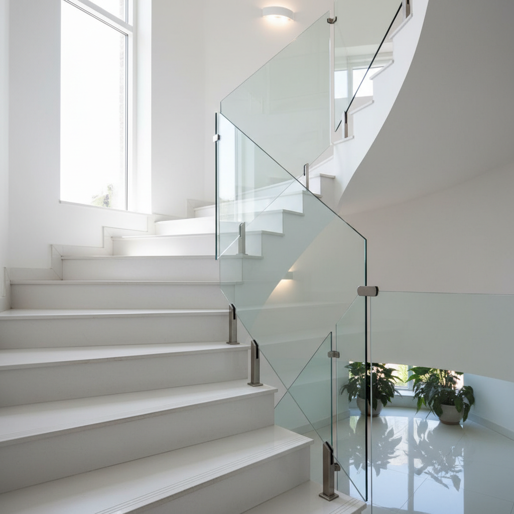 - Толщина стекла: Доступны модели с толщиной стекла 10 мм, 12 мм и триплекс 6+6 мм. - Материалы фурнитуры: Вся фурнитура выполнена из нержавеющей стали, что обеспечивает исключительную стойкость, долговечность и стильный внешний вид. - Цветовое разнообразие: Стекло доступно в различных цветах и вариантах, включая прозрачное, матовое, затемнённое и красочные оттенки, что позволяет подобрать идеальное решение для вашего интерьера. - Виды поручней: Предлагаем различные виды поручней — от классических прямых до более изысканных и современных вариантов, включая металлические и деревянные модели.